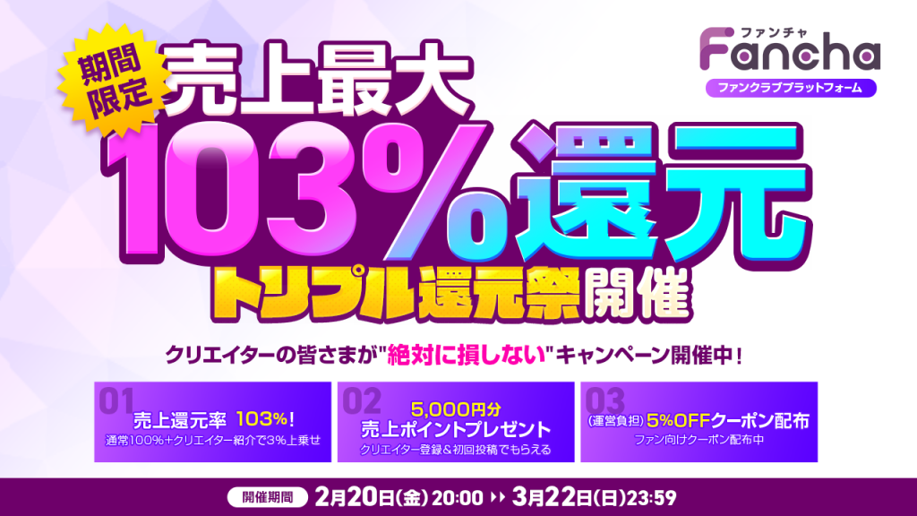 FanChaでは、クリエイターの皆様の活動をより強くご支援するため、